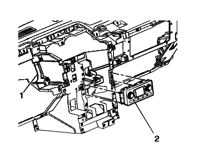 4. Disconnect the electrical connectors (1) from the HVAC control module (2).
