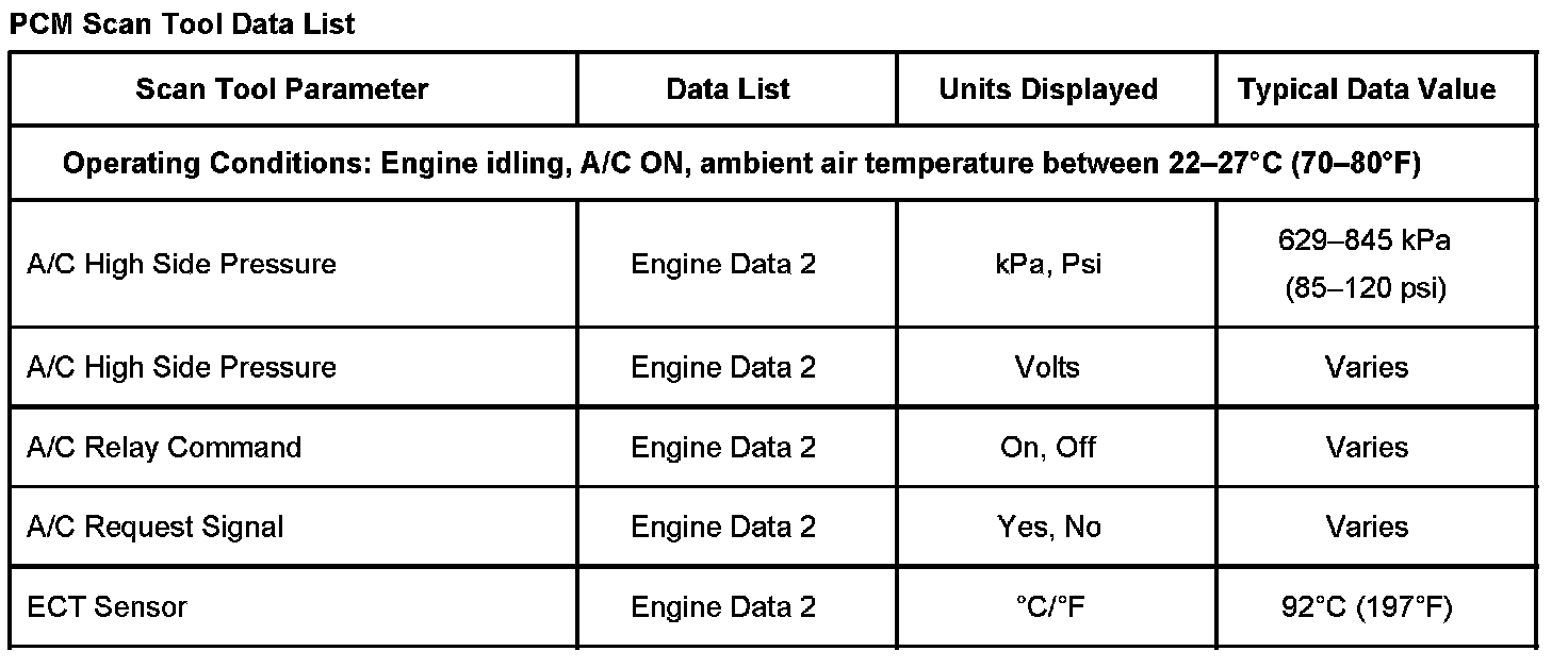 Scan Tool Data List - Powertrain Control Module (PCM)