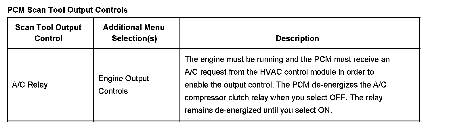 Scan Tool Output Controls - Powertrain Control Module (PCM)