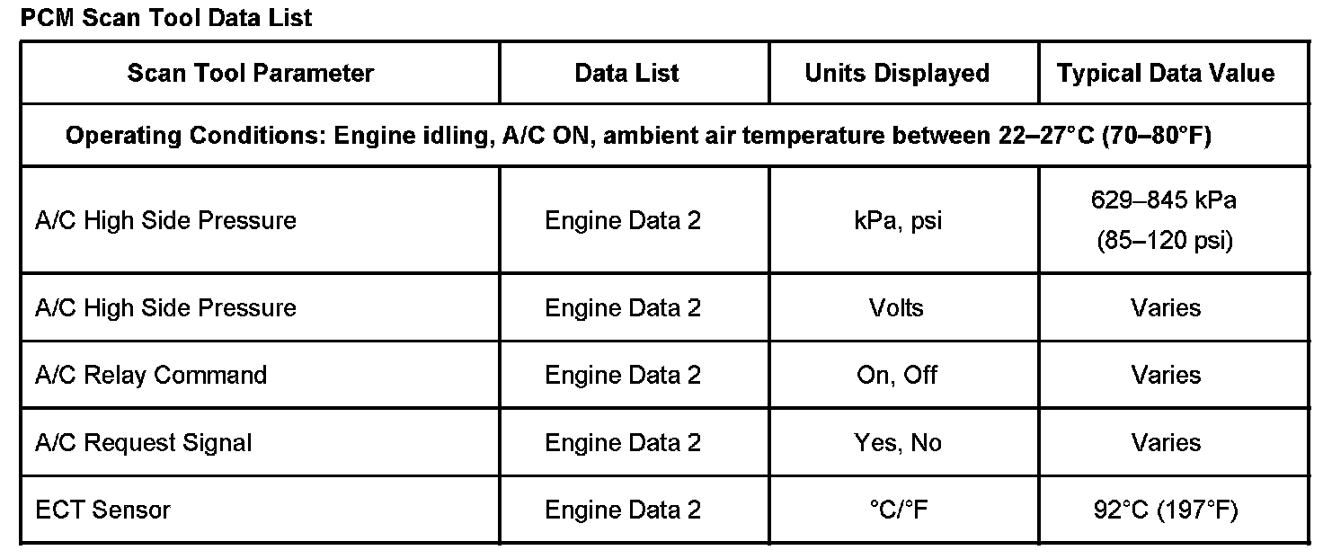Scan Tool Data List - Powertrain Control Module (PCM)