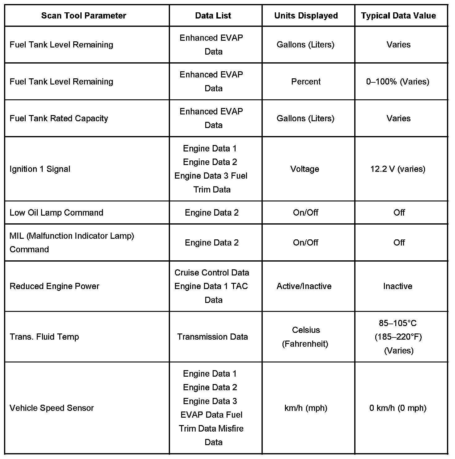 Scan Tool Data List - Powertrain Control Module (PCM)