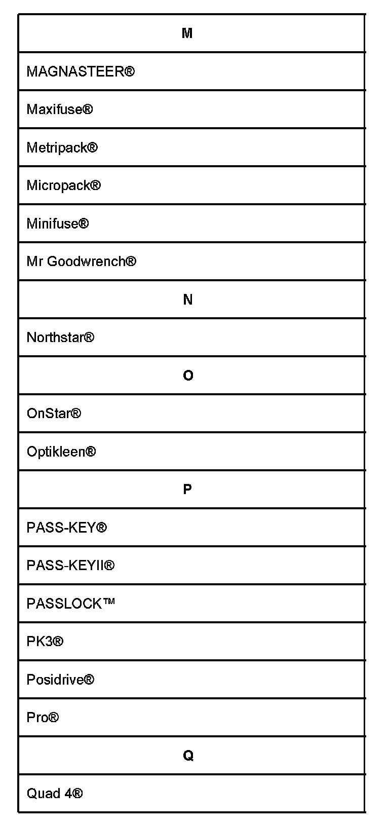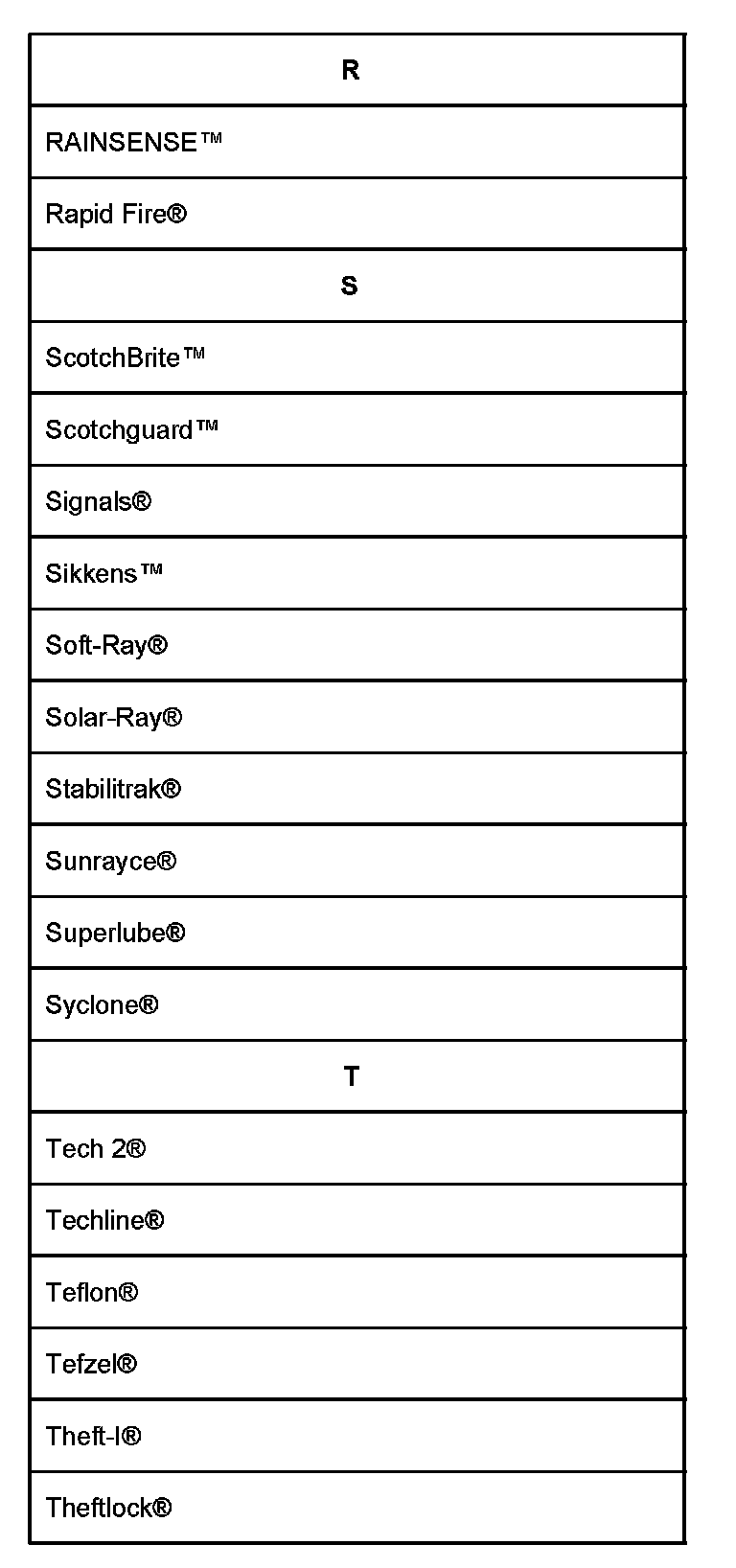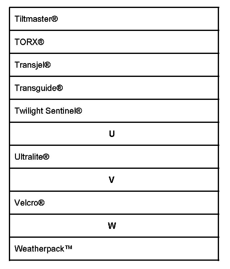 Listed are Registered Trademarks ((R)) or Non-Registered Trademarks ((TM)) which may appear.