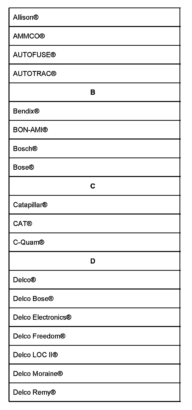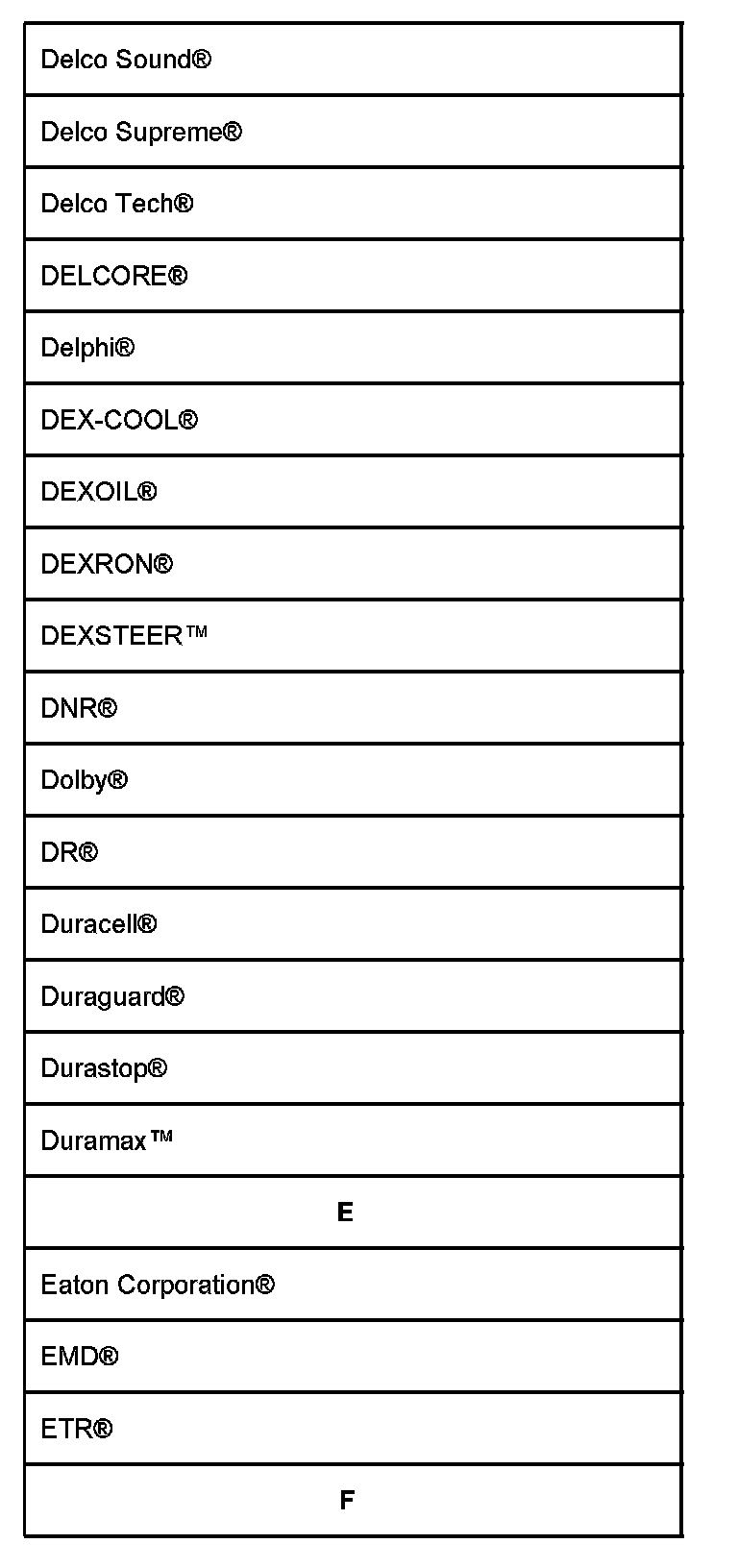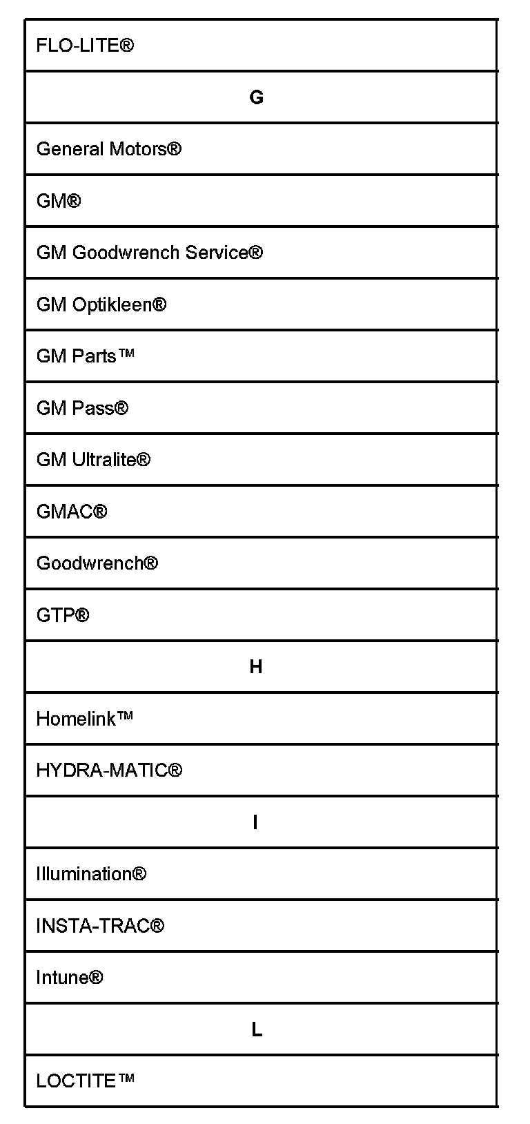 Listed are Registered Trademarks ((R)) or Non-Registered Trademarks ((TM)) which may appear.