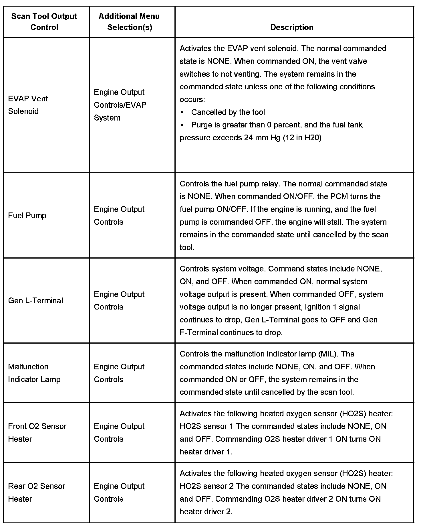 Scan Tool Output Controls