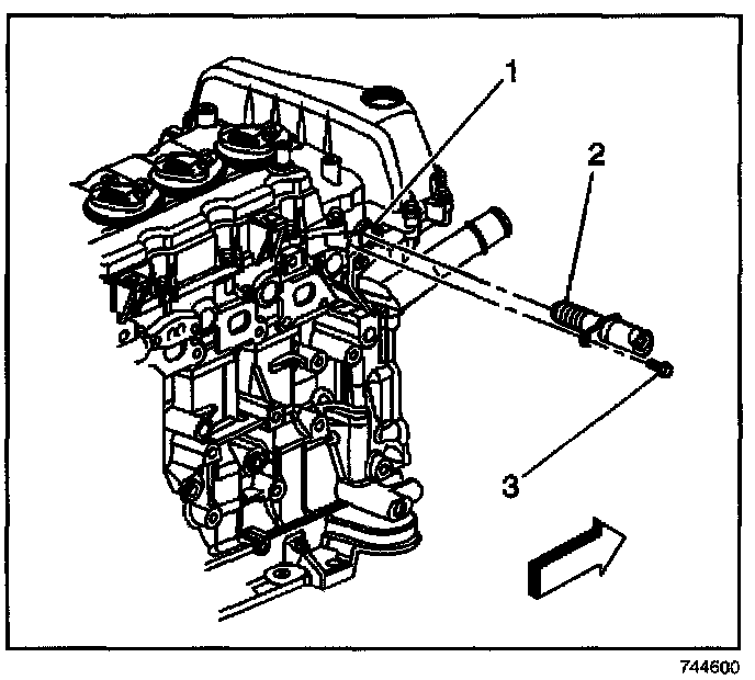 4. Remove the camshaft position actuator solenoid retaining bolt (3).