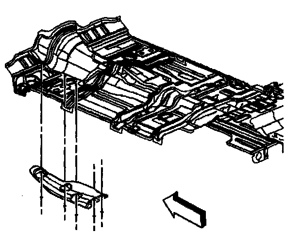 1. Place the catalytic converter heat shield onto the floor panel studs.