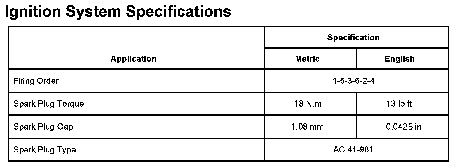 Ignition System Specifications: