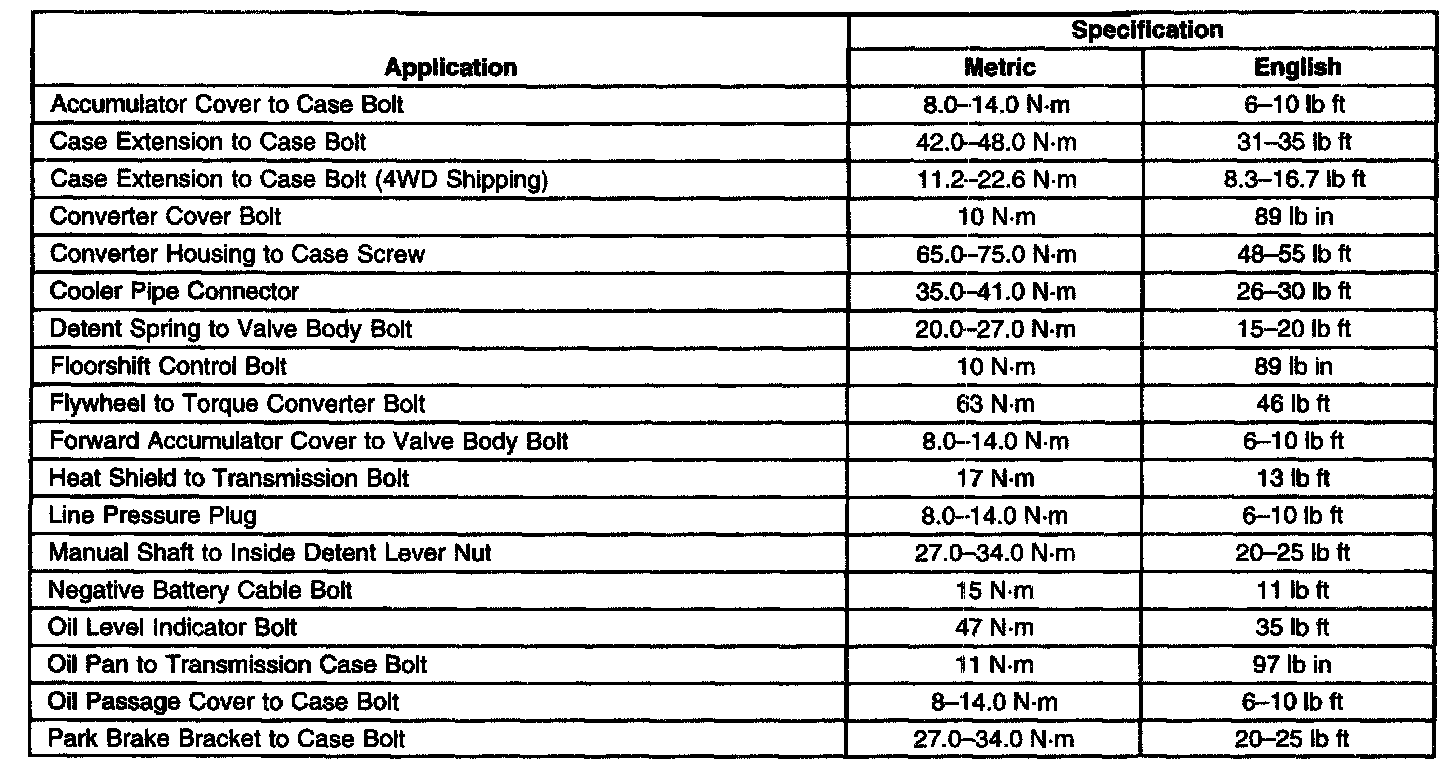 Fastener Tightening Specifications