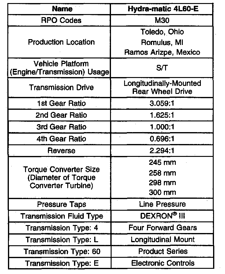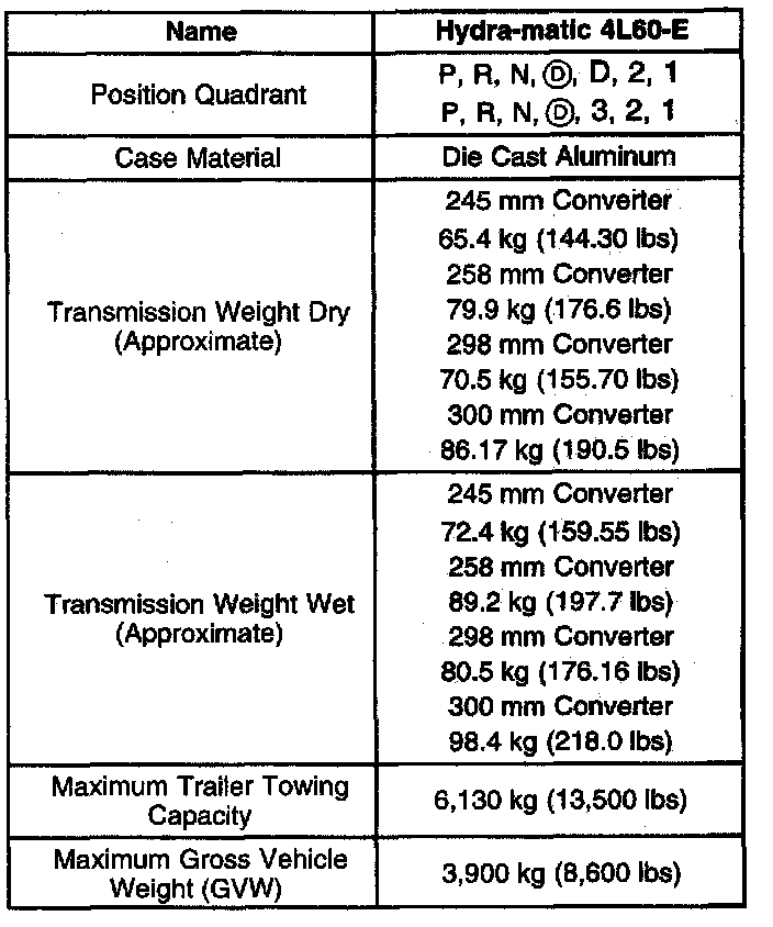 Transmission General Specifications
