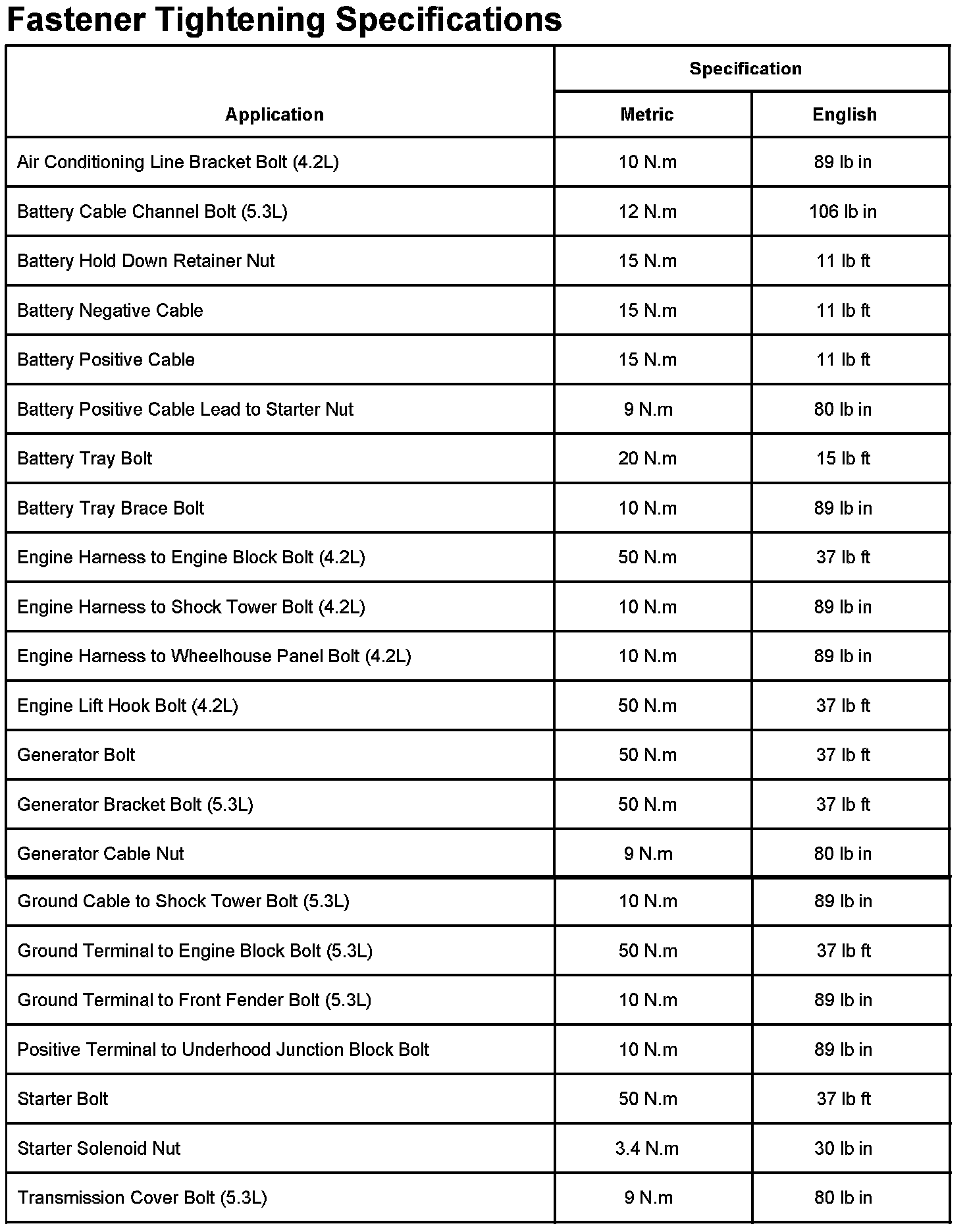 Fastener Tightening Specifications: