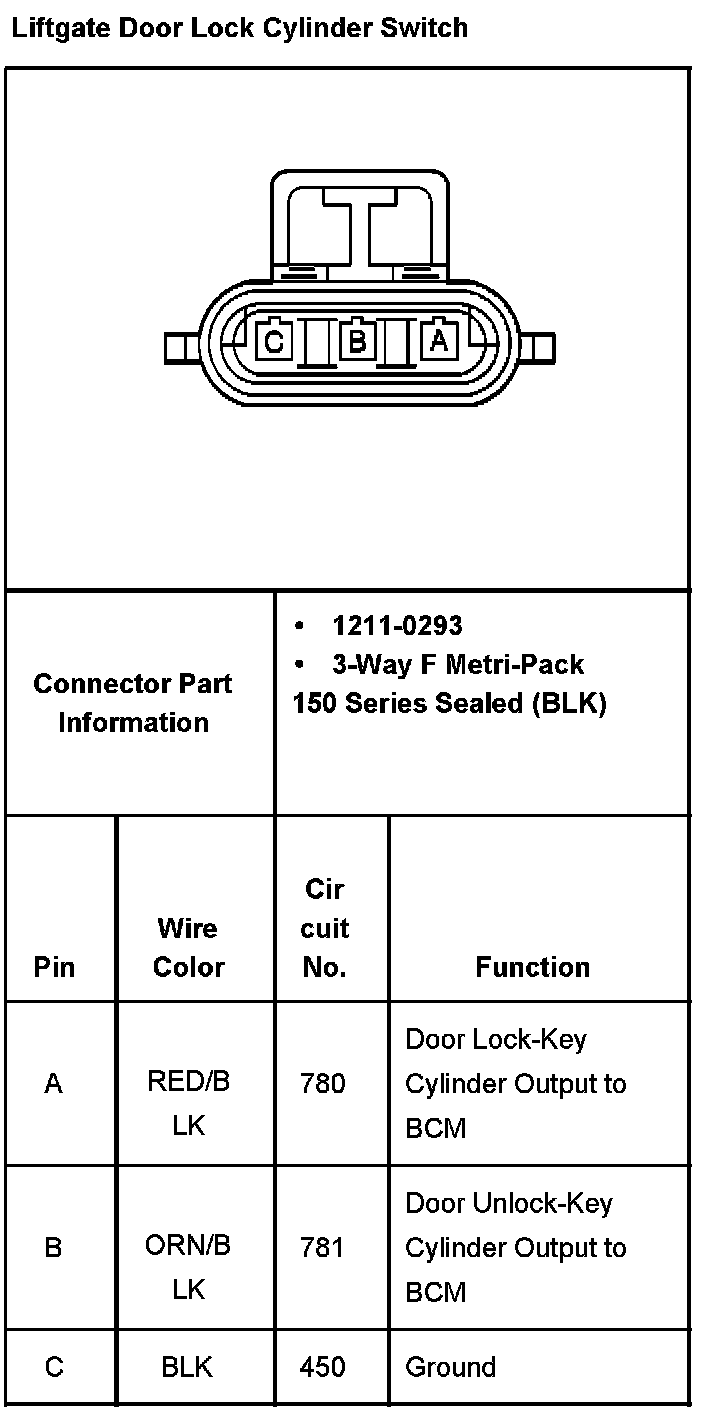 Liftgate Door Lock Cylinder Switch: