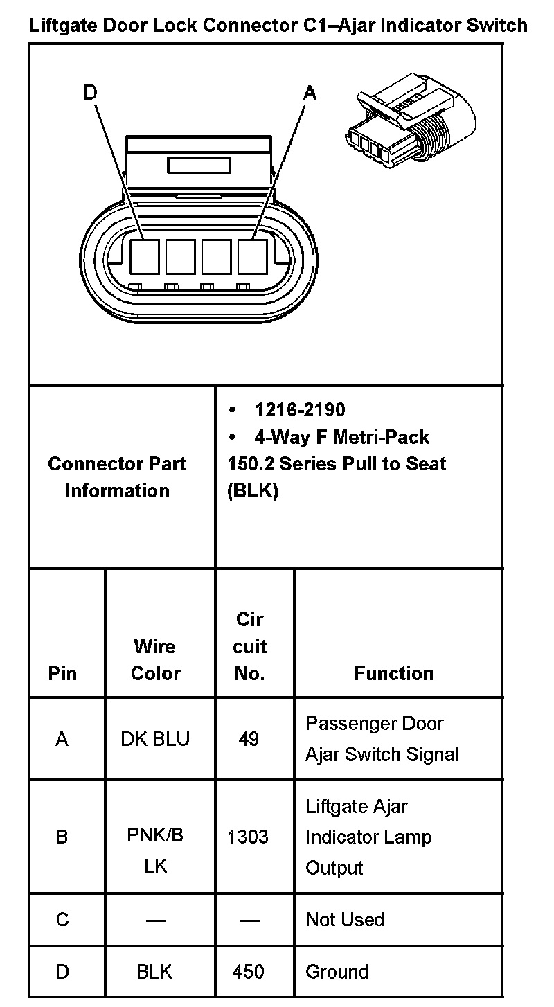Liftgate Door Lock Connector C1 - Ajar Indicator Switch: