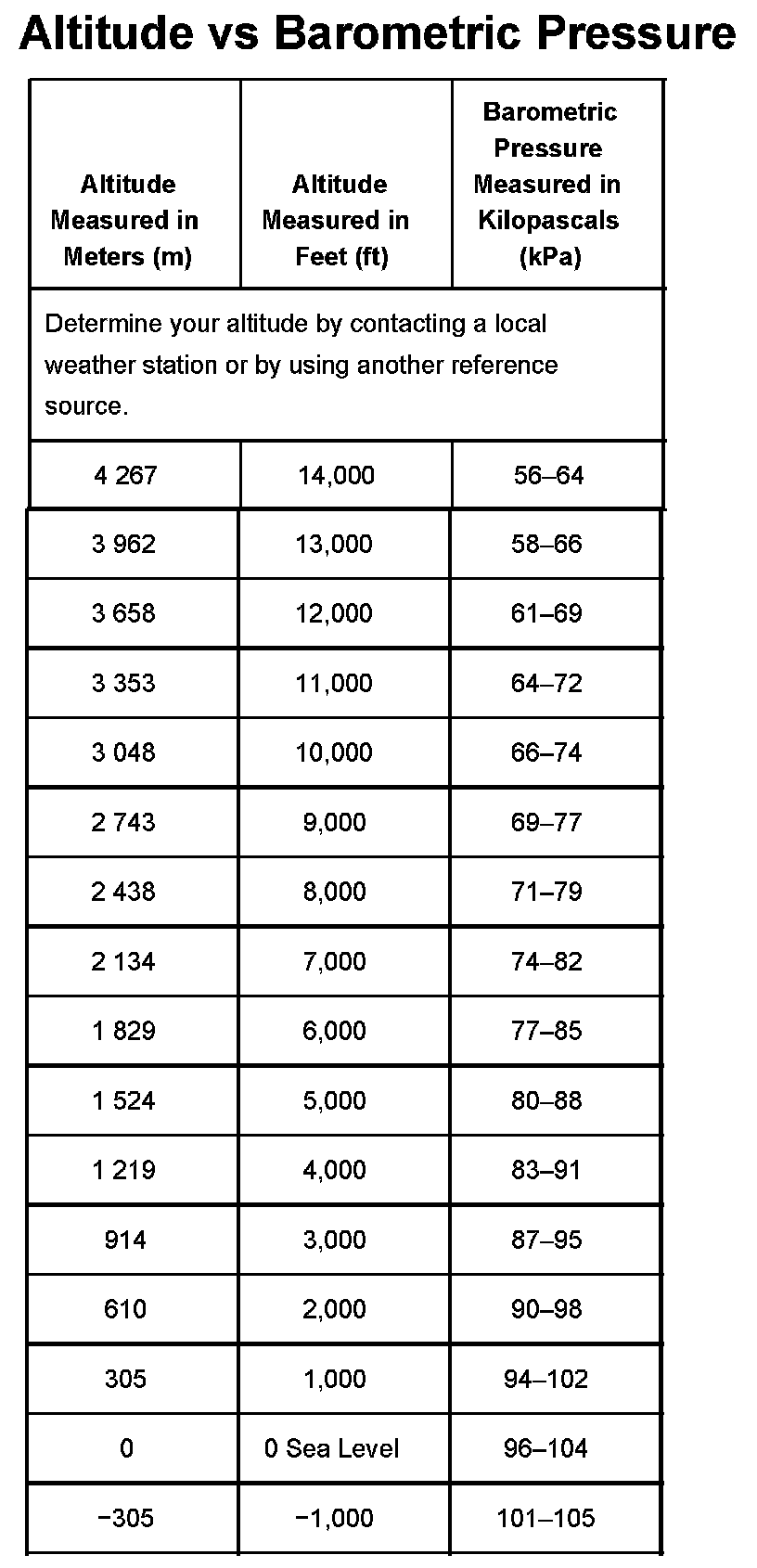 Pressure, Vacuum and Temperature Specifications