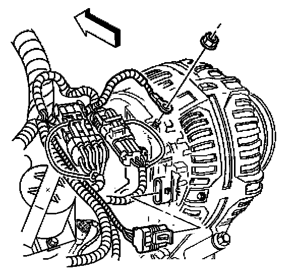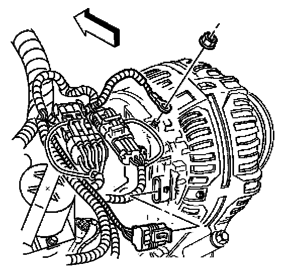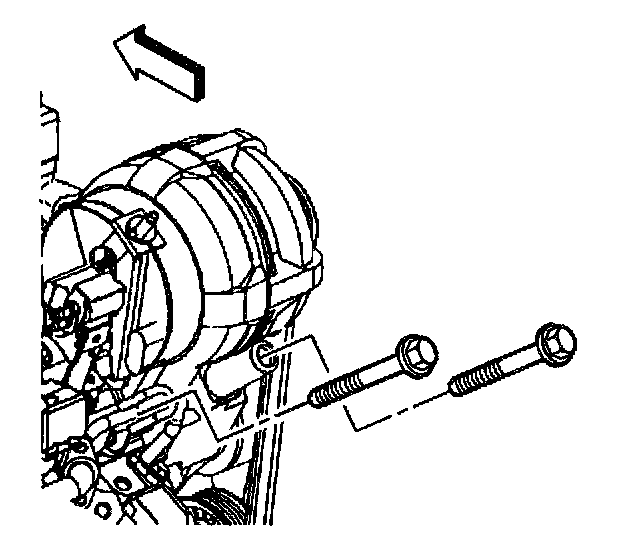 2. Rotate and secure the engine forward to access rear generator bolts. Refer to Rotating the Engine for Service Access in Engine-3.4L.