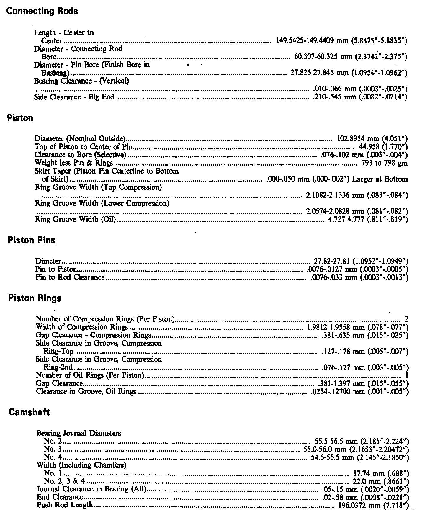 Engine Specifications: