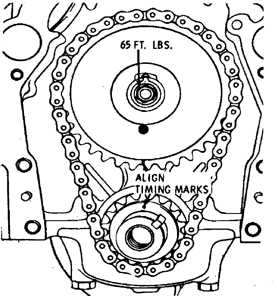 1. Remove front cover as outlined previously. On 6 cylinder engines, loosen rocker arm pivot bolts evenly so that some lash is present between rocker arms and valves.
