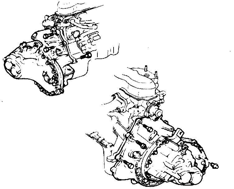 16. Remove transaxle by sliding to left side, away from engine. Carefully lower jack, and move transaxle to bench.