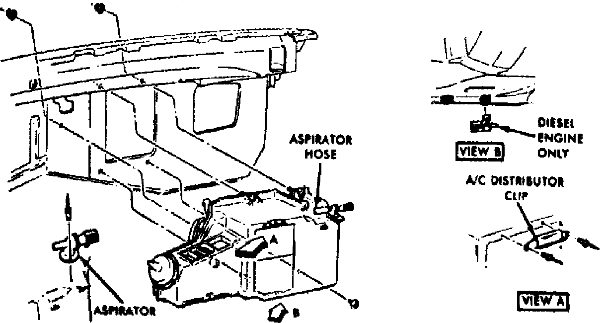 17. From passenger compartment, remove screws and clip retaining heater and A/C case to dash panel.