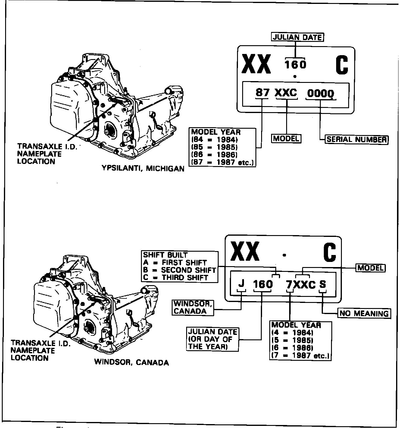 FIGURE 2 - THM 125/125C TRANSAXLE IDENTIFICATION INFORMATION: