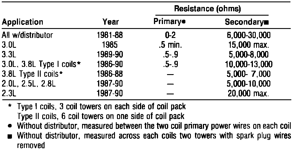 Ignition Coil Specifications: