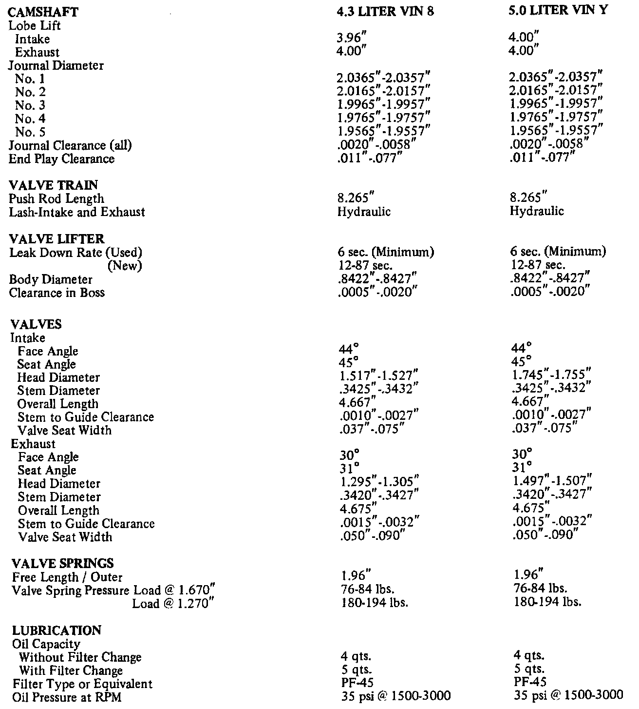 Engine Specifications: