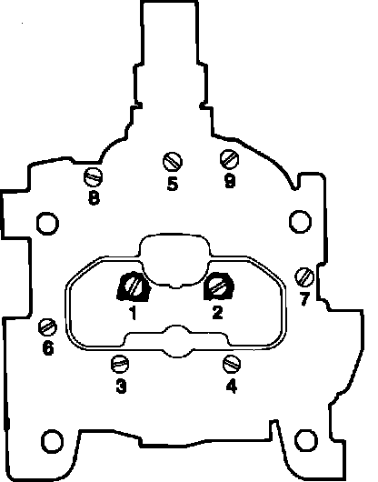 43. Install and tighten in sequence, Fig. 4, air horn to float bowl attaching screws.
