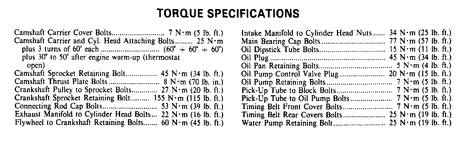 Torque Specifications: