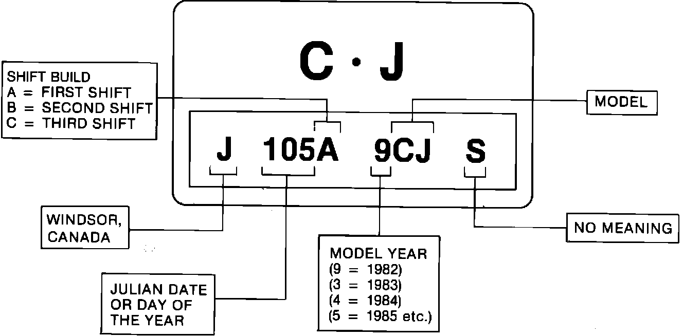 converter clutch control regulator spring may be weak and require replacement with the new spring, part no. 8637888. The new spring has a stronger load, and went into production on February 20, 1984 for U.S. built and March 5, 1984 (Julian Date 065) for Canada built THM 125C transaxles. Refer to Chart 1 for serial number breakpoints. For explanations of nameplates, refer to Fig. 2 (U.S.) and Fig. 3 (Canada).