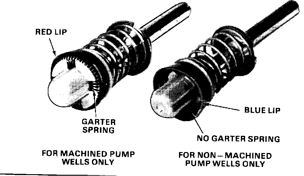 Float bowl assemblies that have the letters "MW" (machined well) embossed next to the throttle position sensor electrical connector use the red lip (with garter spring) viton accelerator pump ONLY. See Figure 1.