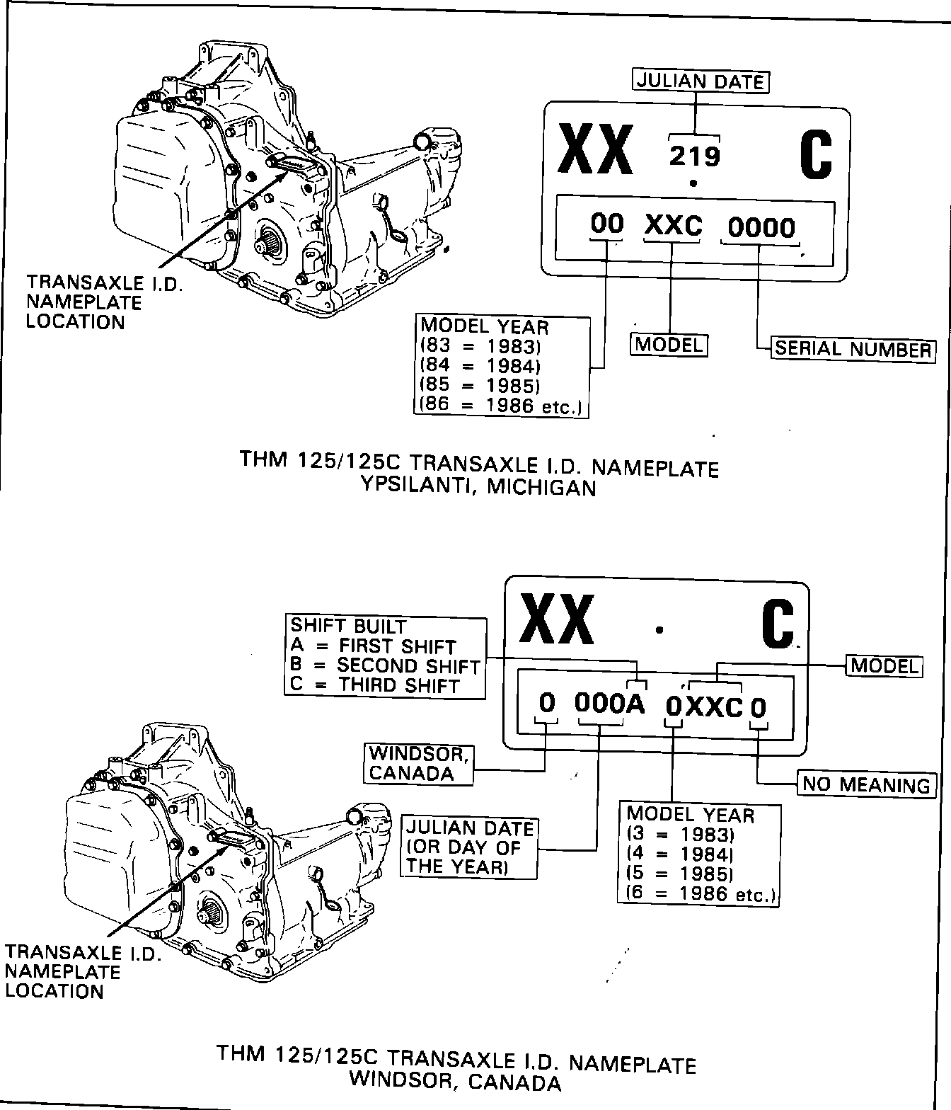 FIGURE 5 - THM 125C TRANSAXLE IDENTIFICATION INFORMATION: