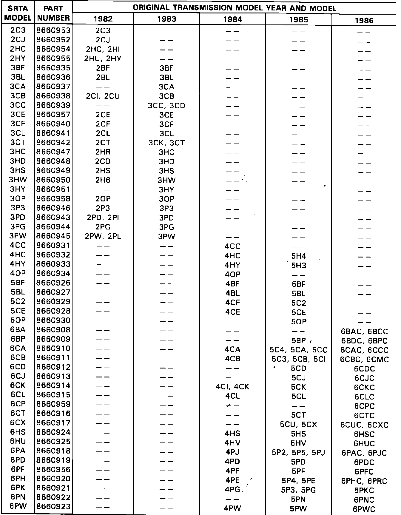 The 125C transaxle identification information and the SRTA model replacement chart (refer to page 8) will assist in selecting the correct SRTA unit to order from your local GMSPO Parts Distribution Center.
