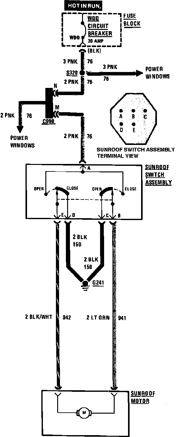 Power Sunroof Wiring Circuit: