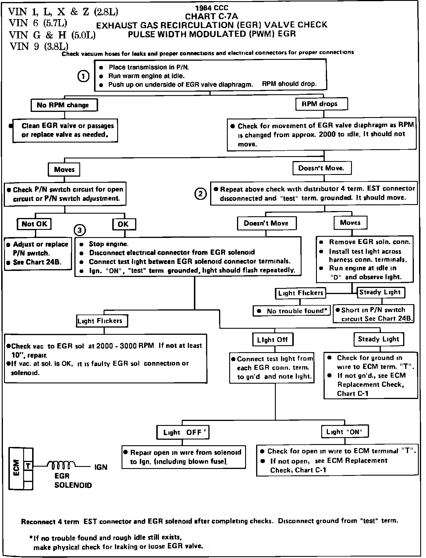 CHART C-7A, PULSE WIDTH MODULATED (PWM) EGR (EXC. CALIF. 3.8L VIN A)
