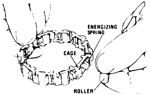 4. Remove roller clutch assembly and inspect bearings, cage and springs for damage or wear, see image.