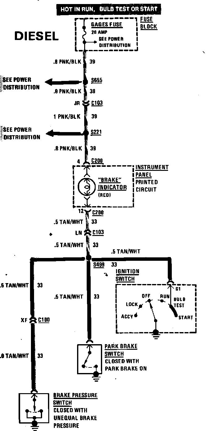 Brake Warning System Wiring Circuit: