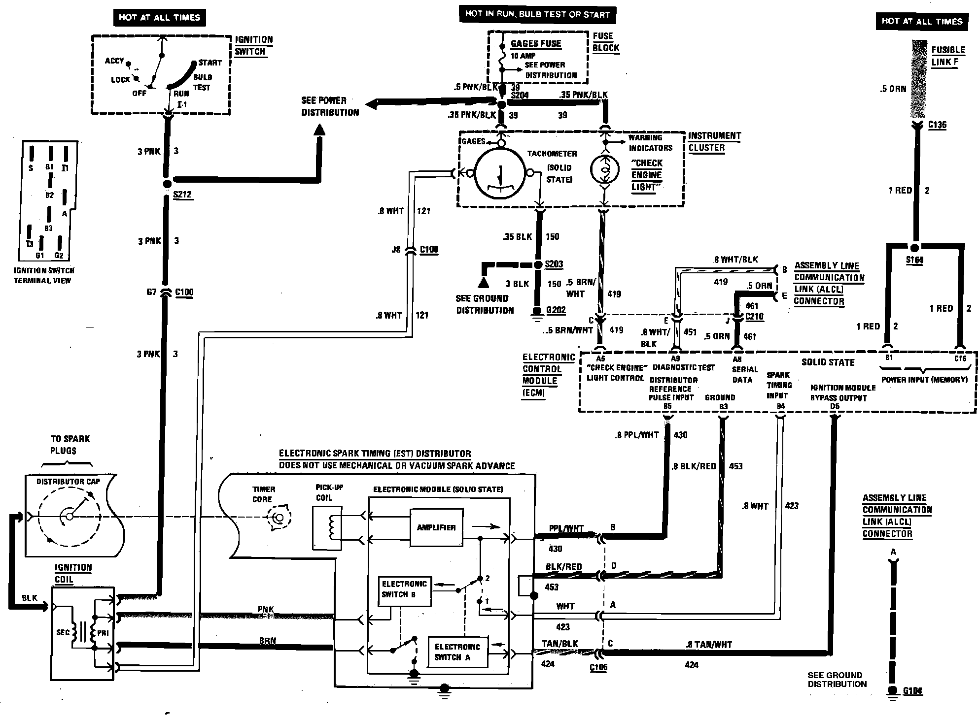 Multiport Fuel Injection (Check Engine Light & Ignition System) Wiring Circuit: