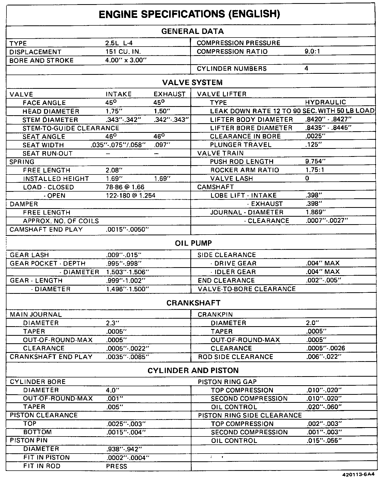 Engine Specifications: