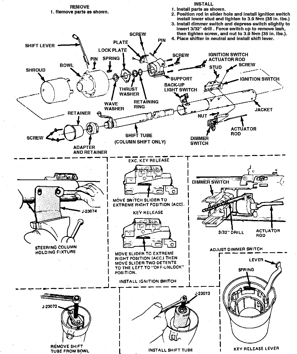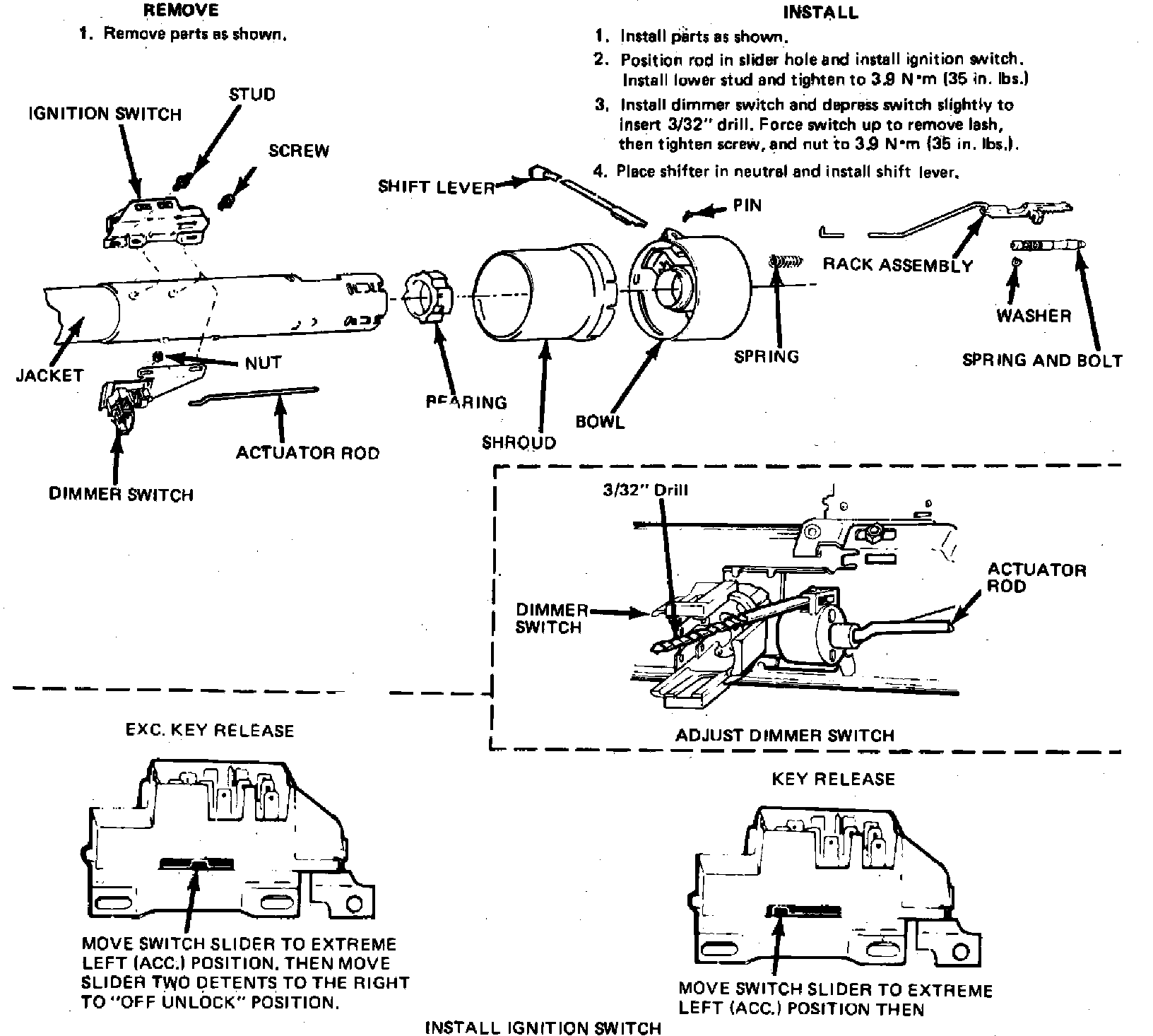 Fig. 3 Ignition & dimmer switch removal & installation. Tilt column: