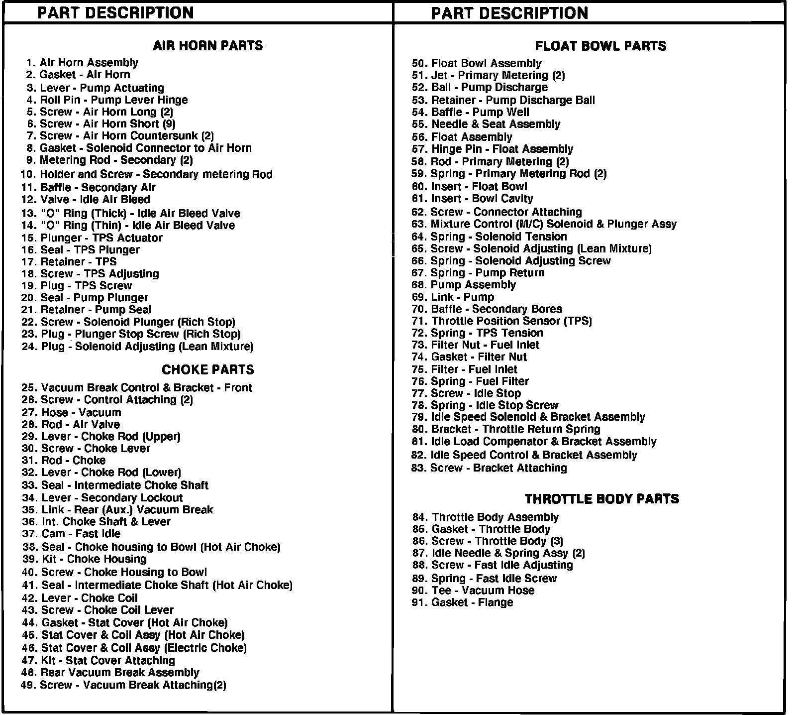 Fig. 3b Typical exploded view of Rochester E4M series carburetor (Part 2 of 2):