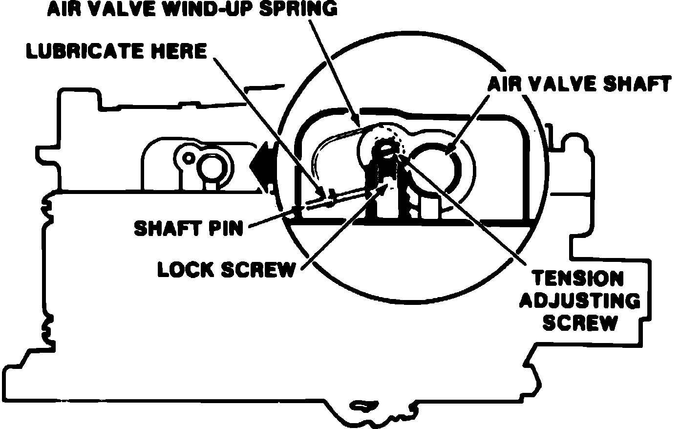 38. Liberally apply lithium base grease to air valve shaft pin, Fig. 7. Make sure that pin surface contacted by closing spring is lubricated.