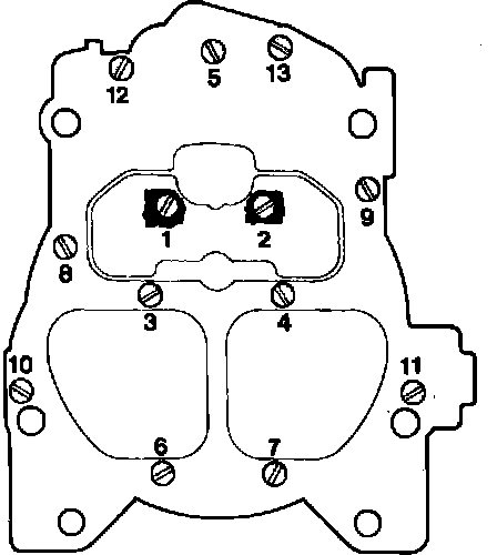 44. Install 11 air horn screws and lockwashers, and 2 countersunk screws located next to carburetor venturi area. If used, position secondary air baffle deflector under air horn screws #3 and #4. Tighten screws evenly in numerical sequence as shown in Fig. 5.