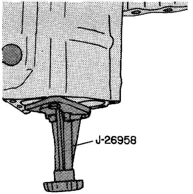 3. Install snap ring on output shaft, see image above step 1. It may be necessary to move output shaft outward by tightening adjusting screw on tool J-26958, see image, to install output shaft to reaction selective washer snap ring. Make sure ring is fully seated in output shaft groove.