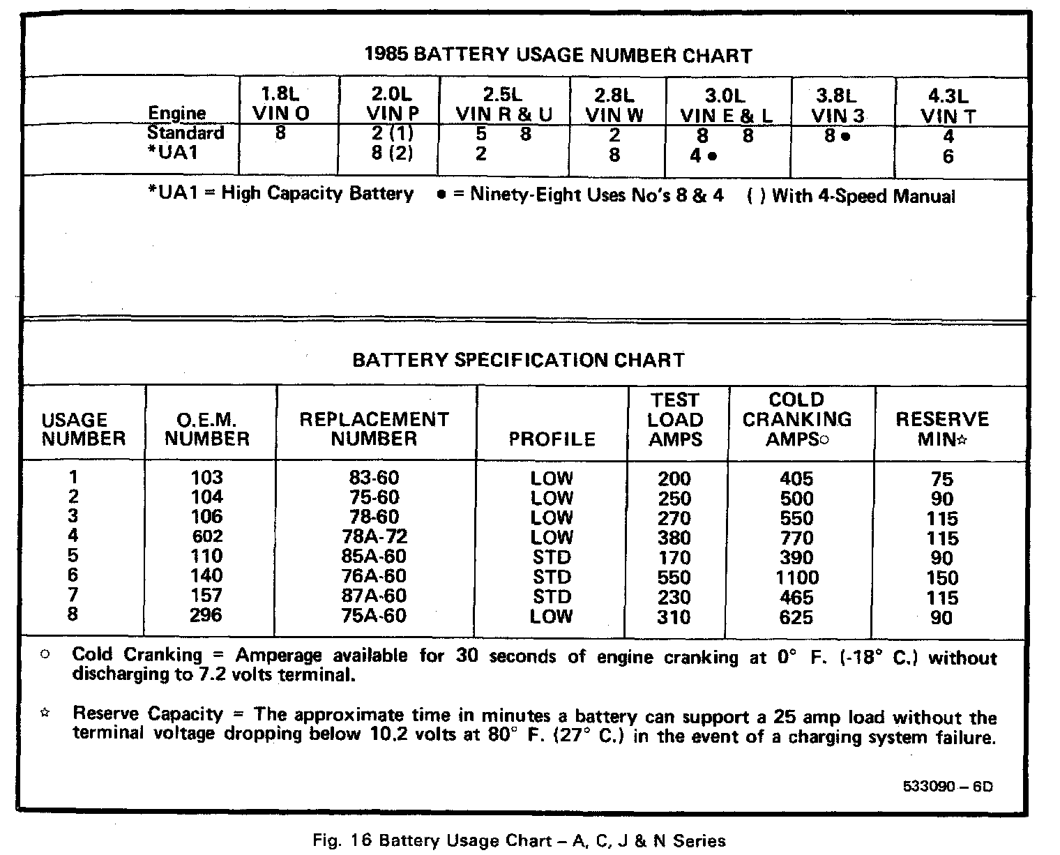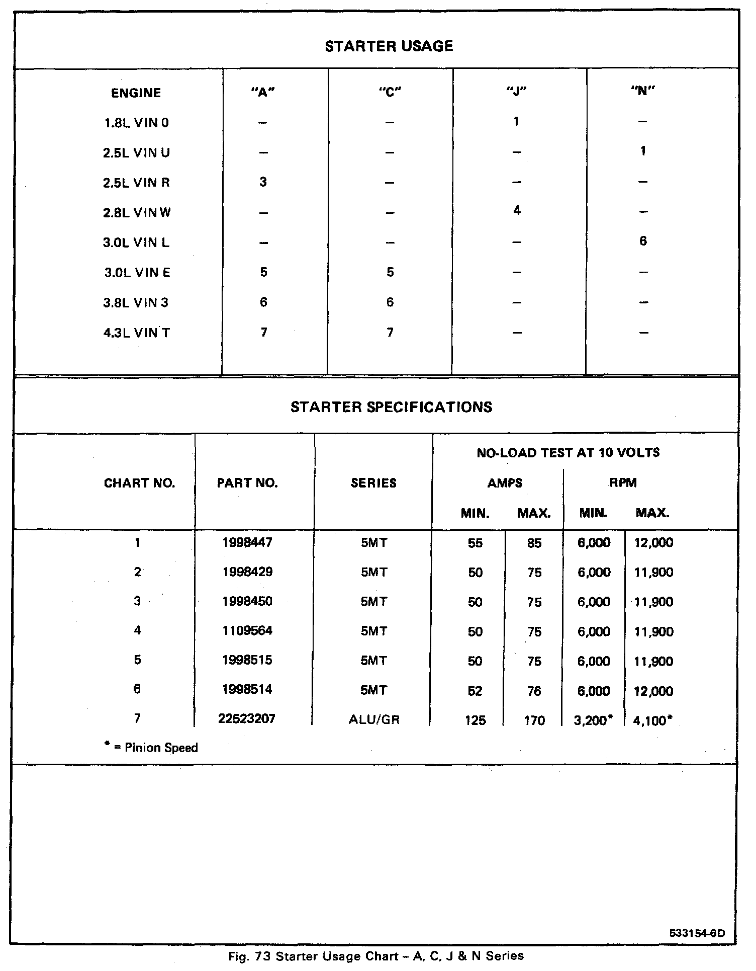 Starting and Charging: Specifications