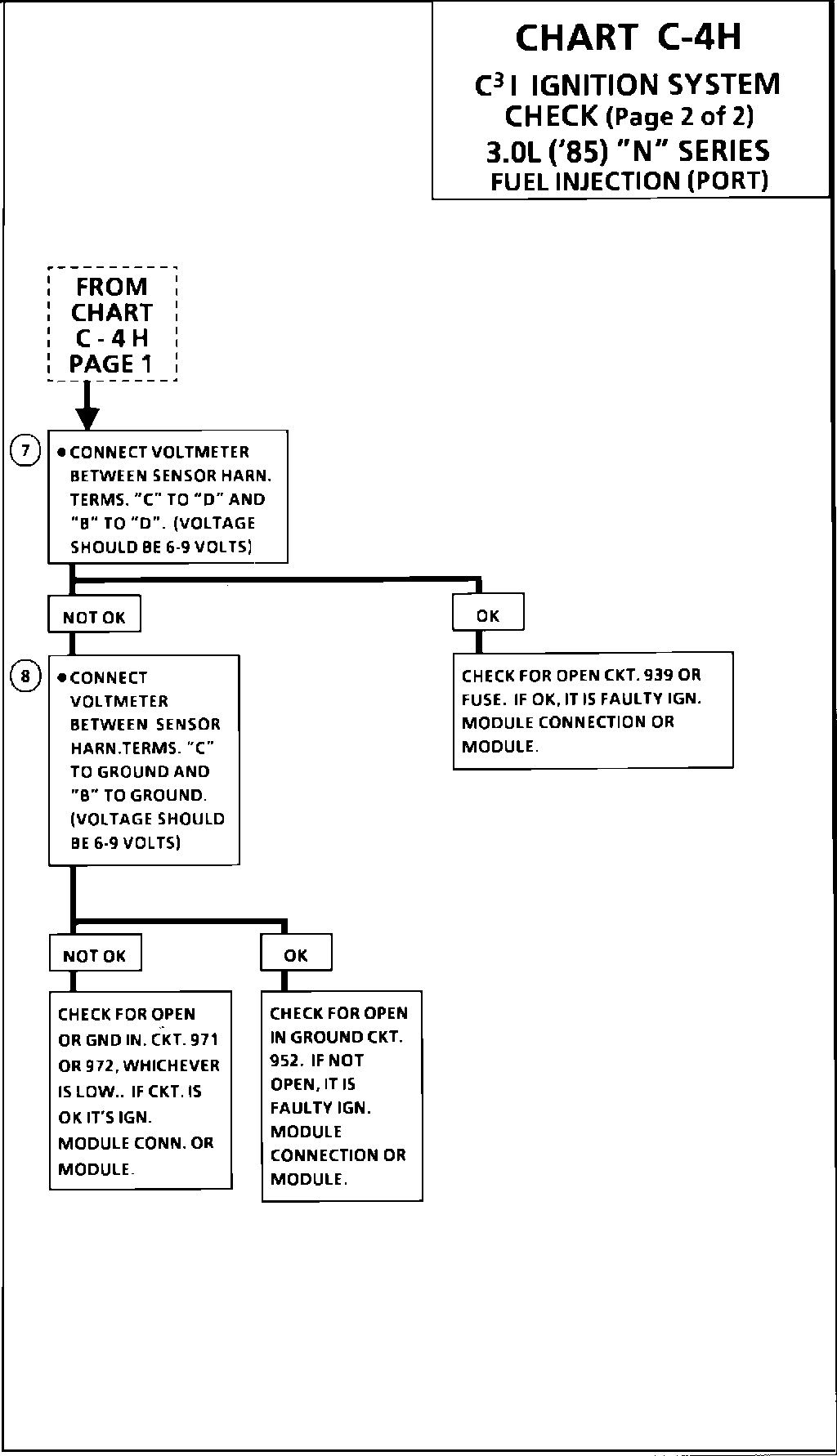 8. Checks to see if problem is in ground circuit 952, crank signal circuit 971, Cam signal circuit 972, or ignition module.