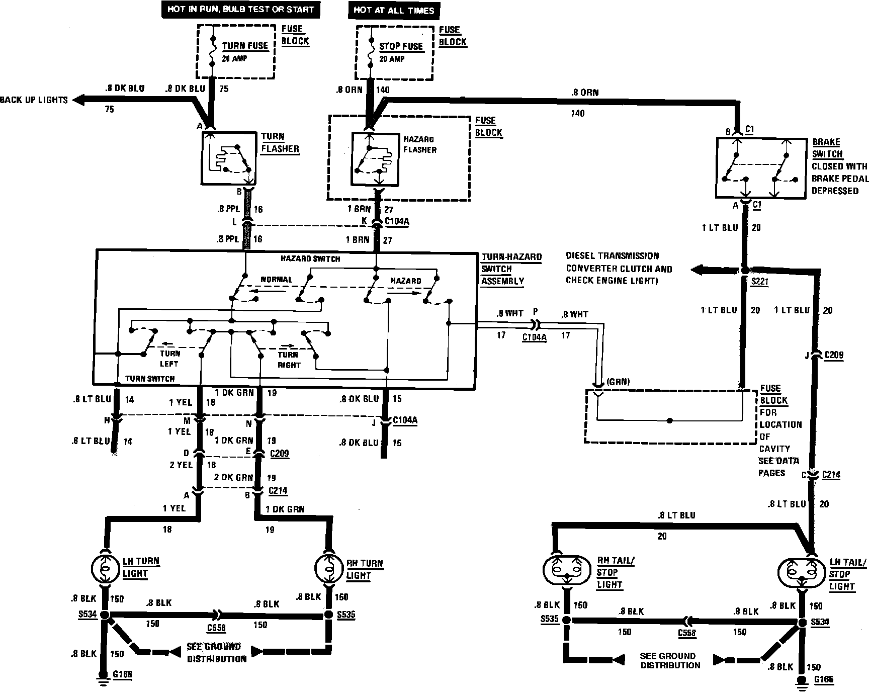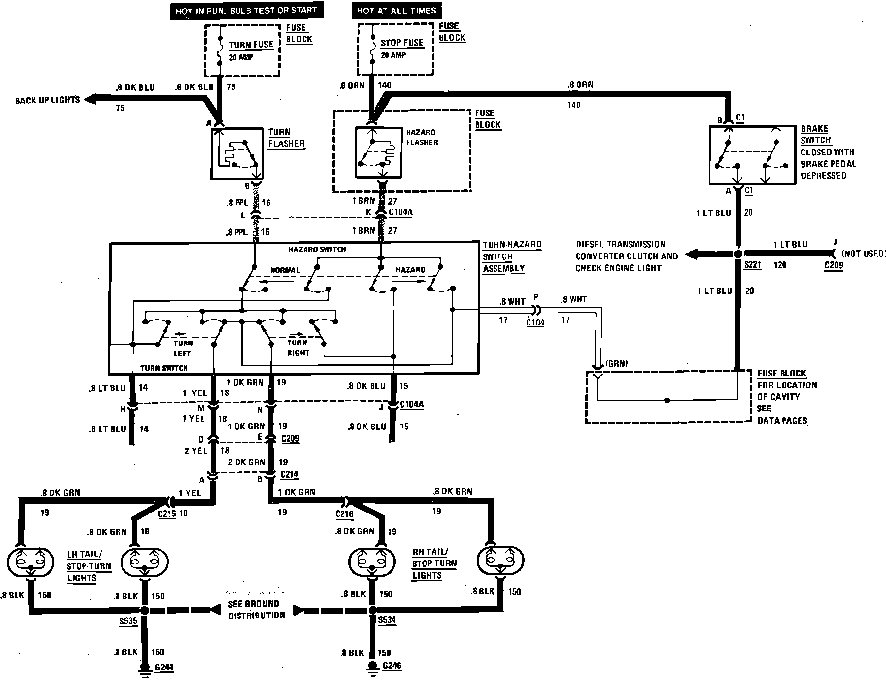 Rear Hazard, Stop & Turn Lamp Wiring Circuit (2 Door With Amber Lights):