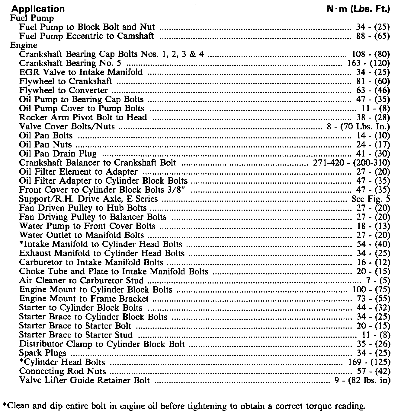 Torque Specifications: