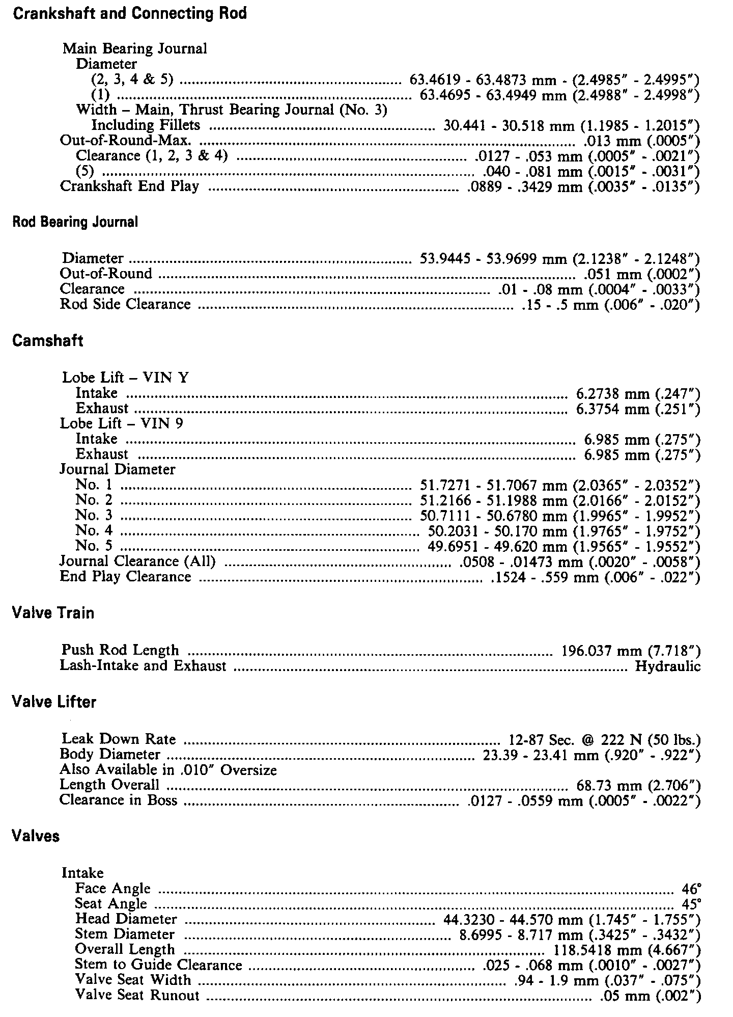 Continued Engine Specifications: