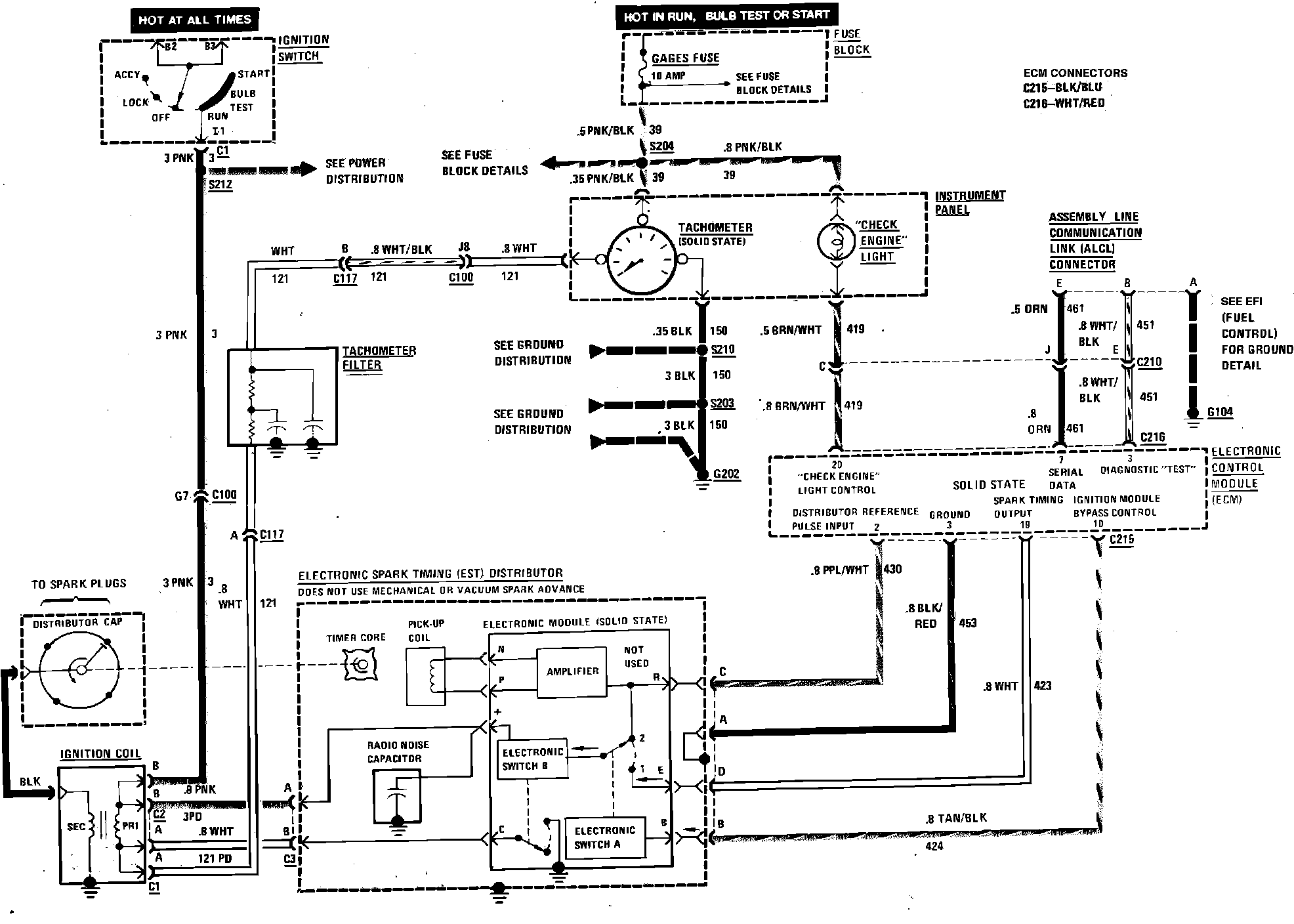 Fig. 99 Electronic Fuel Injection (Check Engine Light & Ignition System) Wiring Circuit: