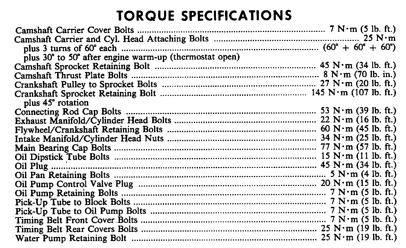 Torque Specifications: