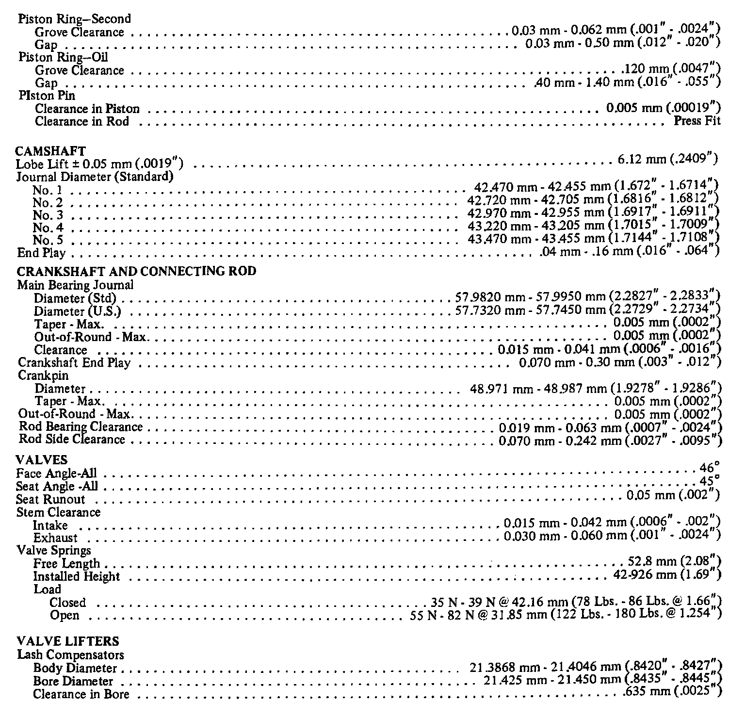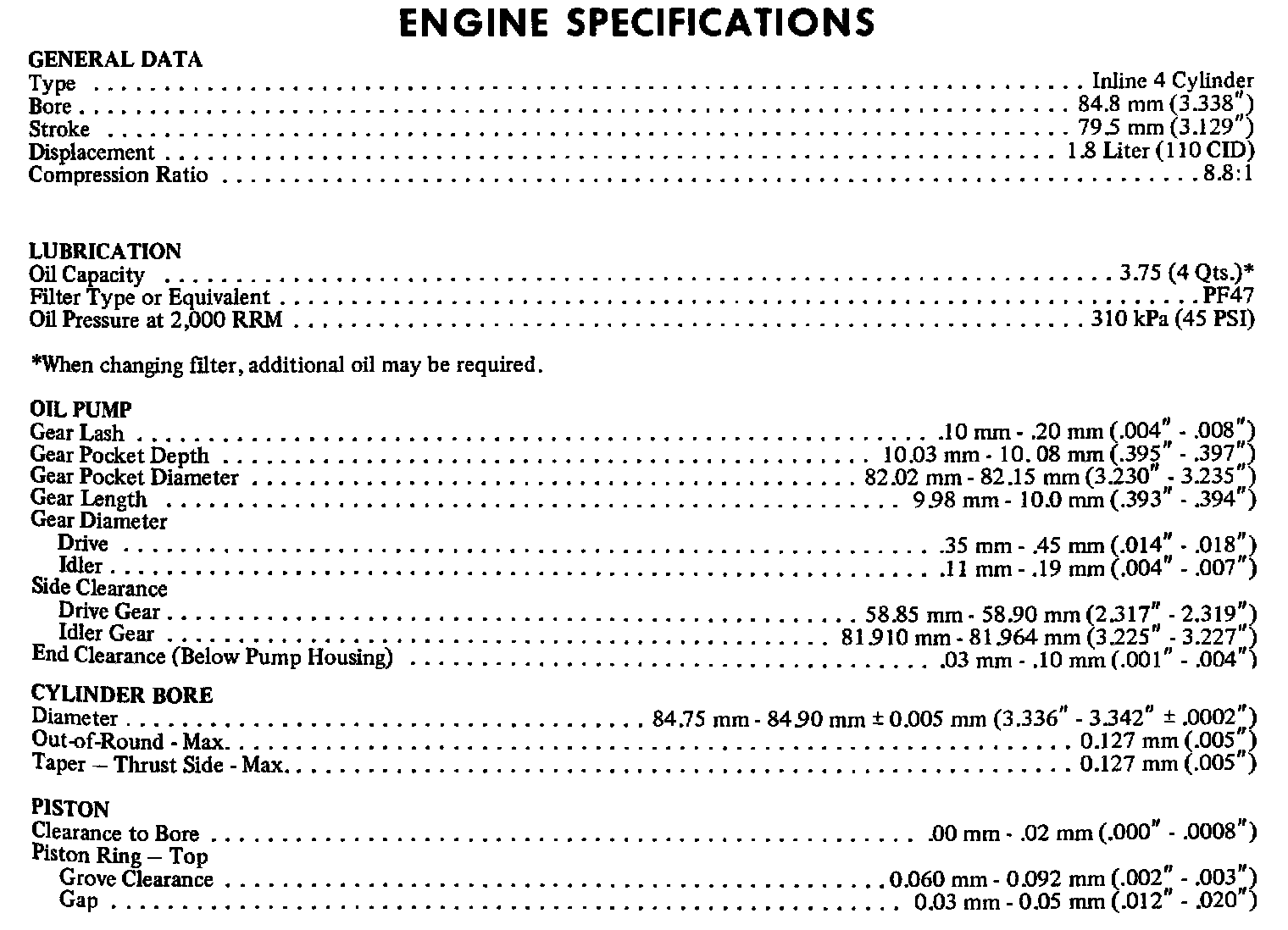Continued Engine Specifications: